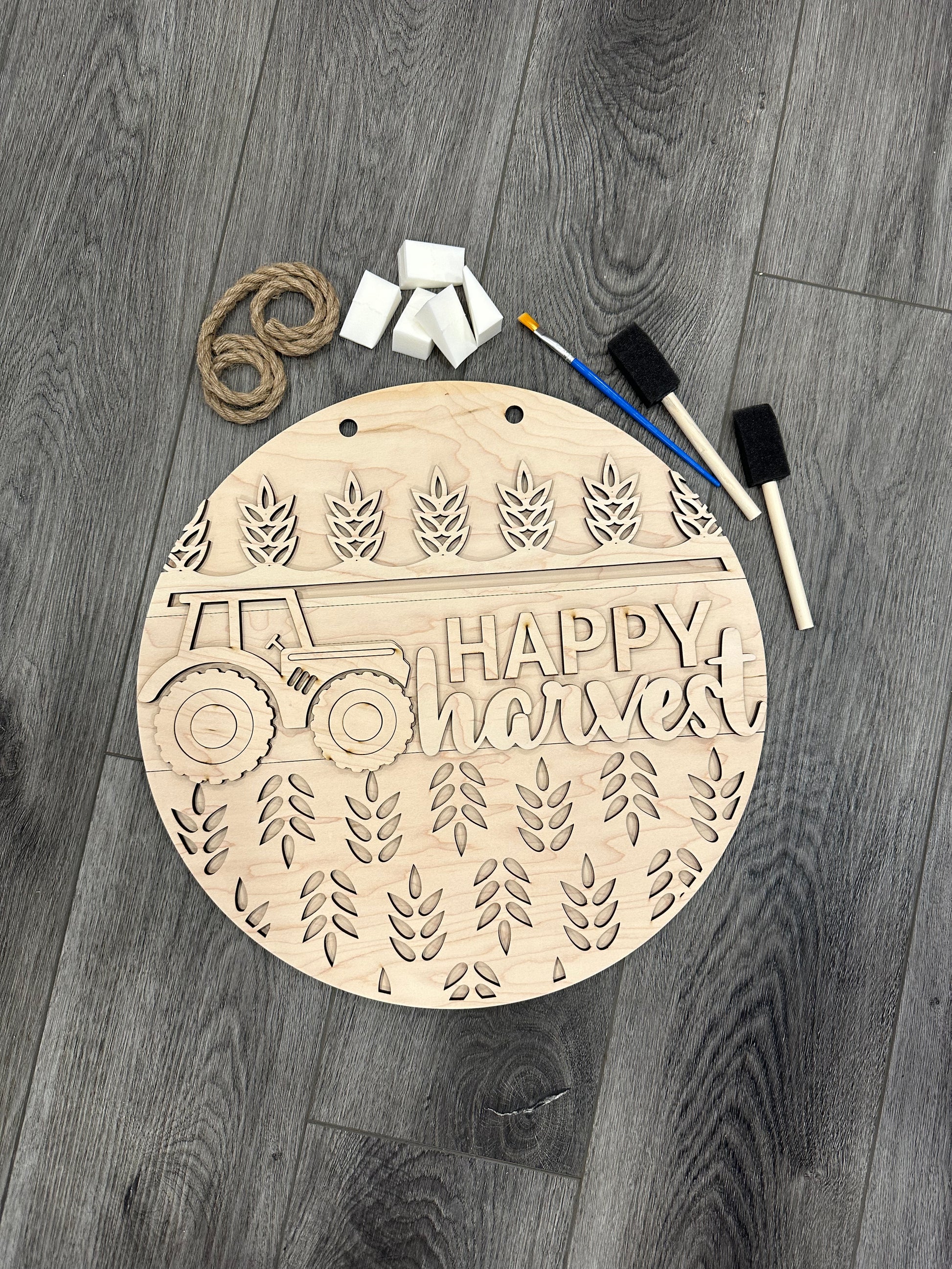 Size of finished sign is 16” in diameter and comes with a rope to hang!
