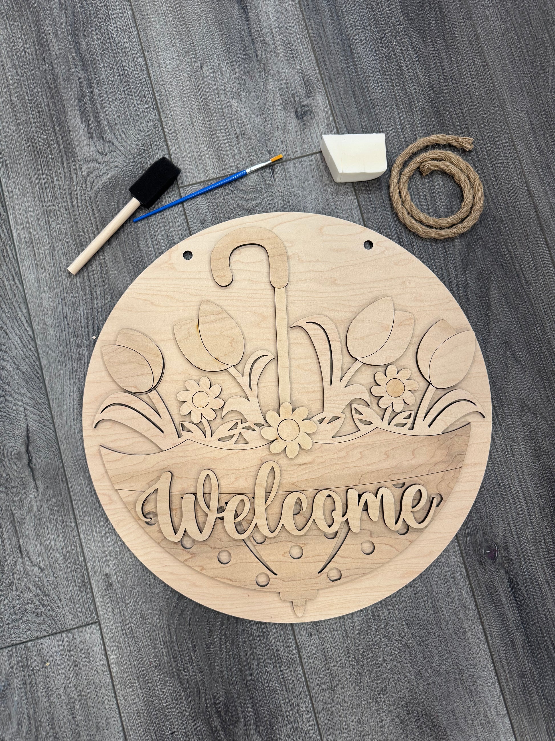 Size of finished sign is 16” in diameter and comes with a rope to hang!