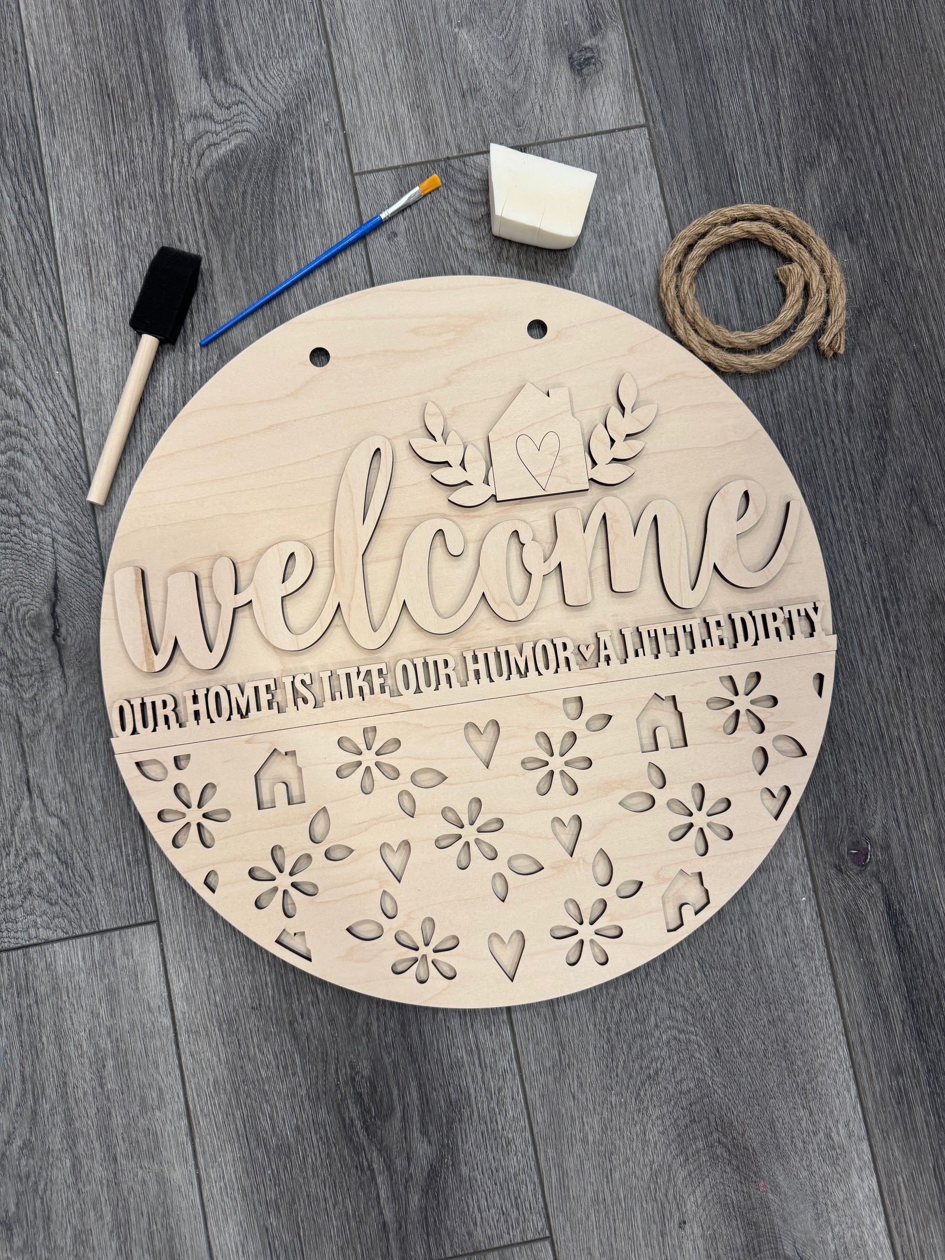 Size of finished sign is 16” in diameter and comes with a rope to hang!