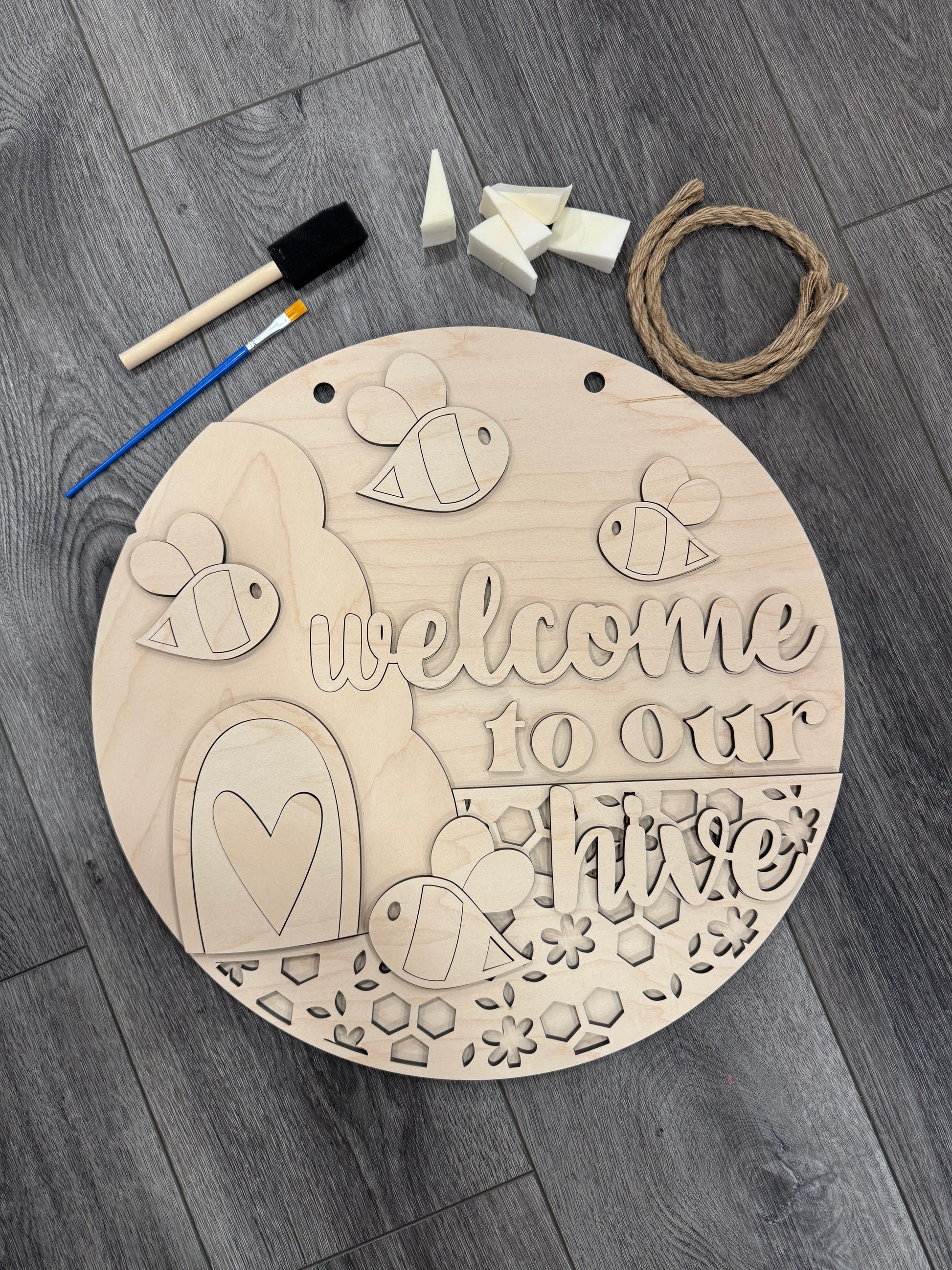 Size of finished sign is 16” in diameter and comes with a rope to hang!
