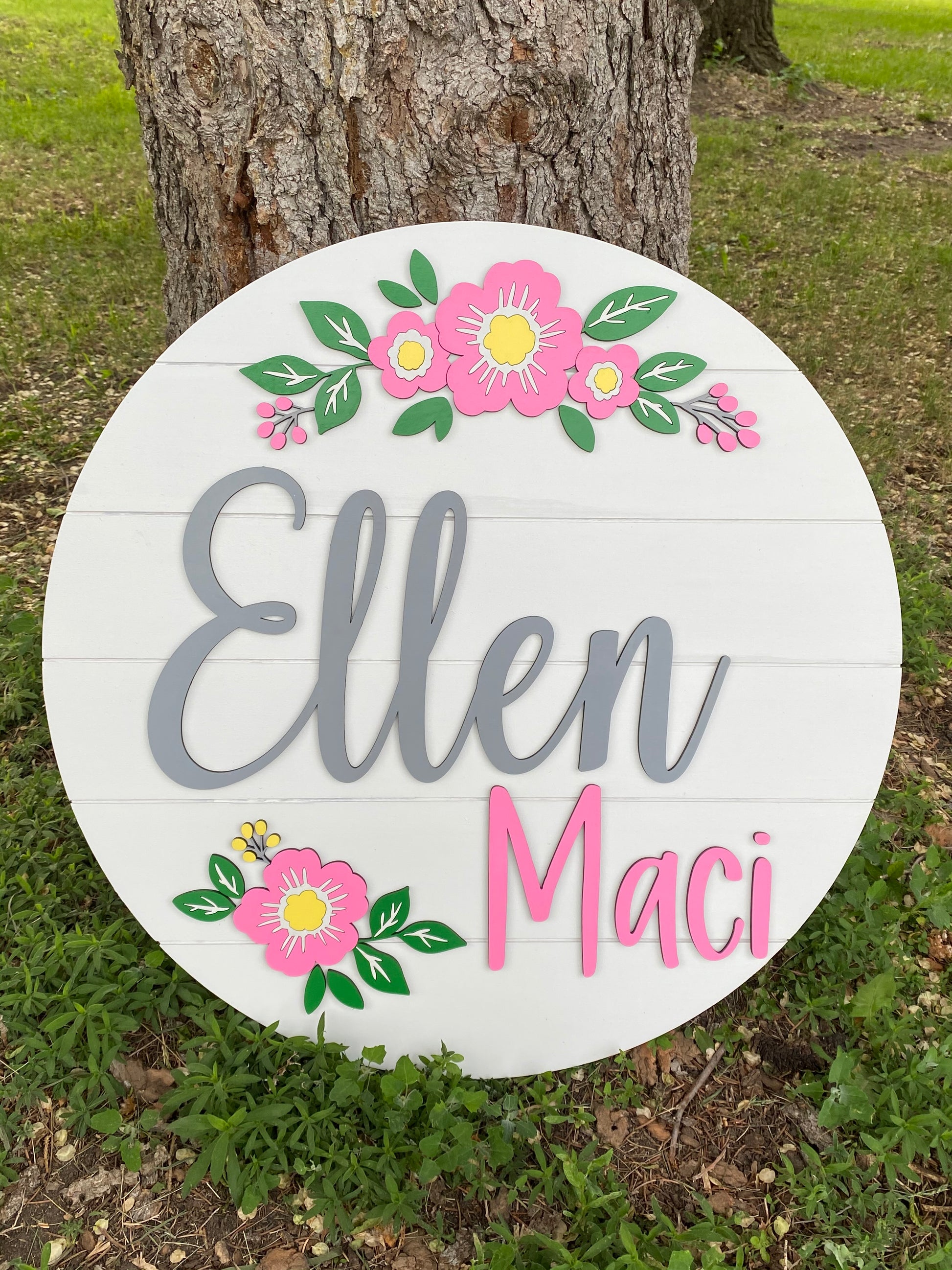 These round signs have a 1/2" thick backer and make the perfect addition to any nursery, child's room, or for anyone!