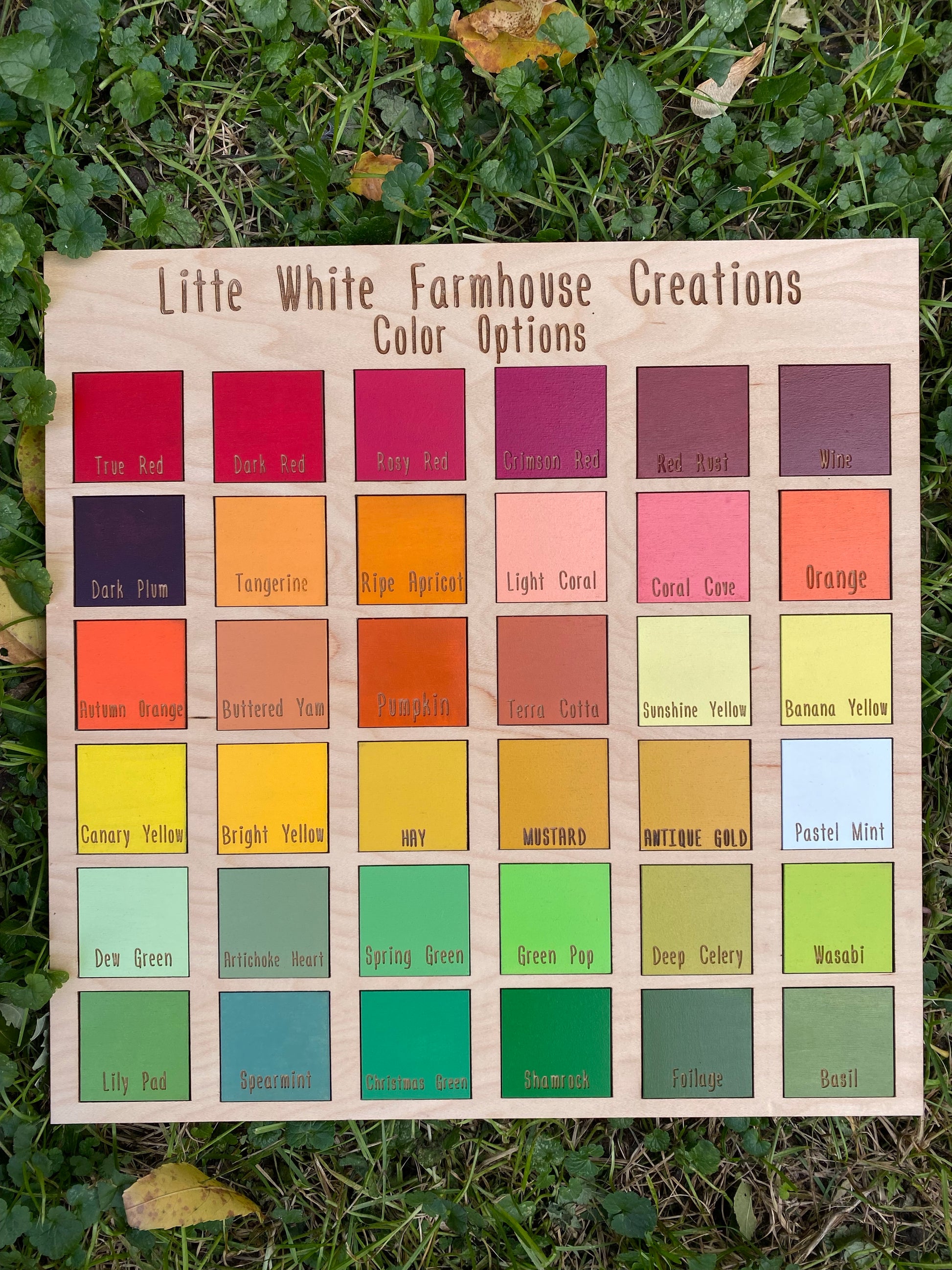 In the notes section at the checkout tell me the name you want on the ornament and what color you want for the top layer and what color for the bottom layer.